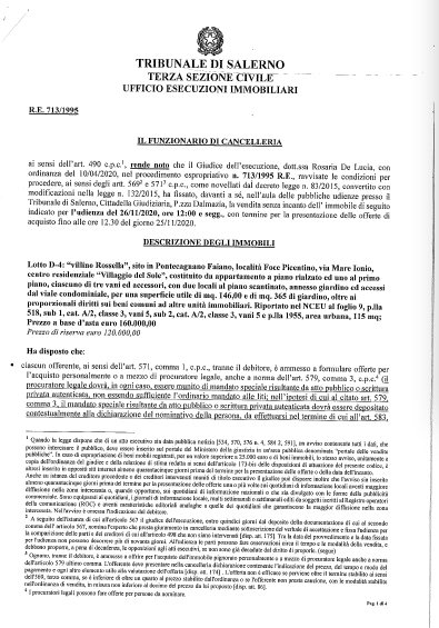 TRIBUNALE DI SALERNO UFFICIO ESECUZIONI IMMOBILIARI Procedura Esecutiva n. 713/1995