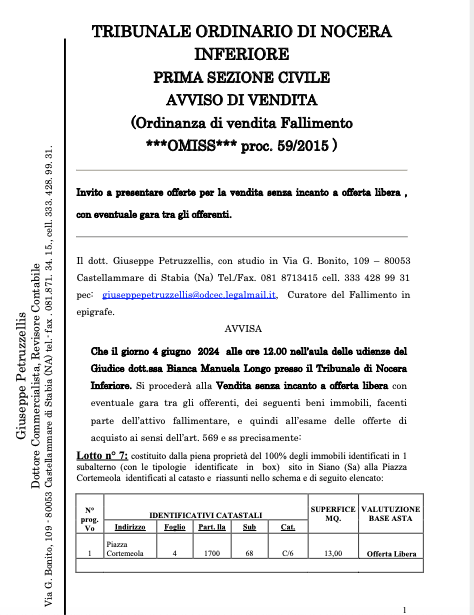 | appartamenti - sottotetti - box auto e terreni | Siano (SA) | 04/06/2024 | |||||||||||||||||||||||||||||||||||||||||||||||